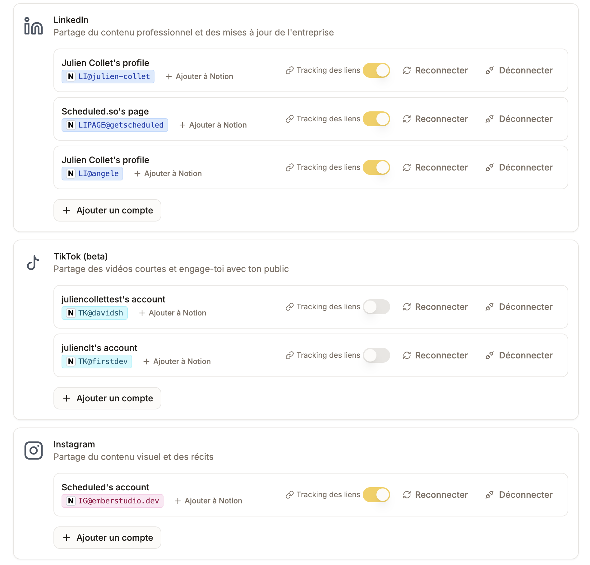 Invite your clients on Scheduled and publish on their LinkedIn, Instagram, X, Facebook, YouTube and TikTok profiles directly from Notion. Add unlimited client accounts for the same price.