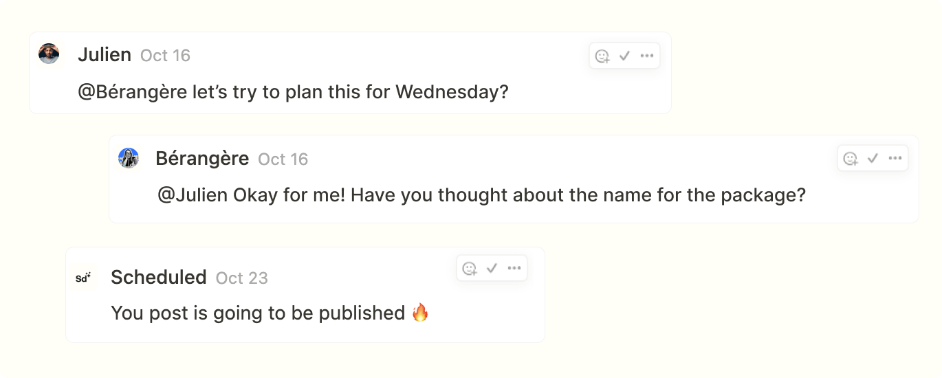 Centralise le workflow de ton agence dans Notion. Revois le contenu, laisse des commentaires et reçois une notification quand les posts sont prêts à être publiés.